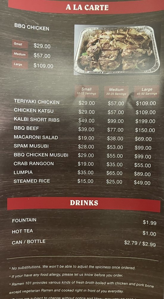 Ramen 101 ~ Modesto Menu